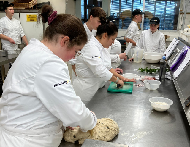In de vertrouwde omgeving van de bakkerij gingen de studenten aan de slag met het testen en bakken van de door hen bedachte recepten. Met zo veel mogelijk lokale ingrediënten, zoals Gronings bier, Groningse mosterd en Gronings meel gingen ze aan de bak.